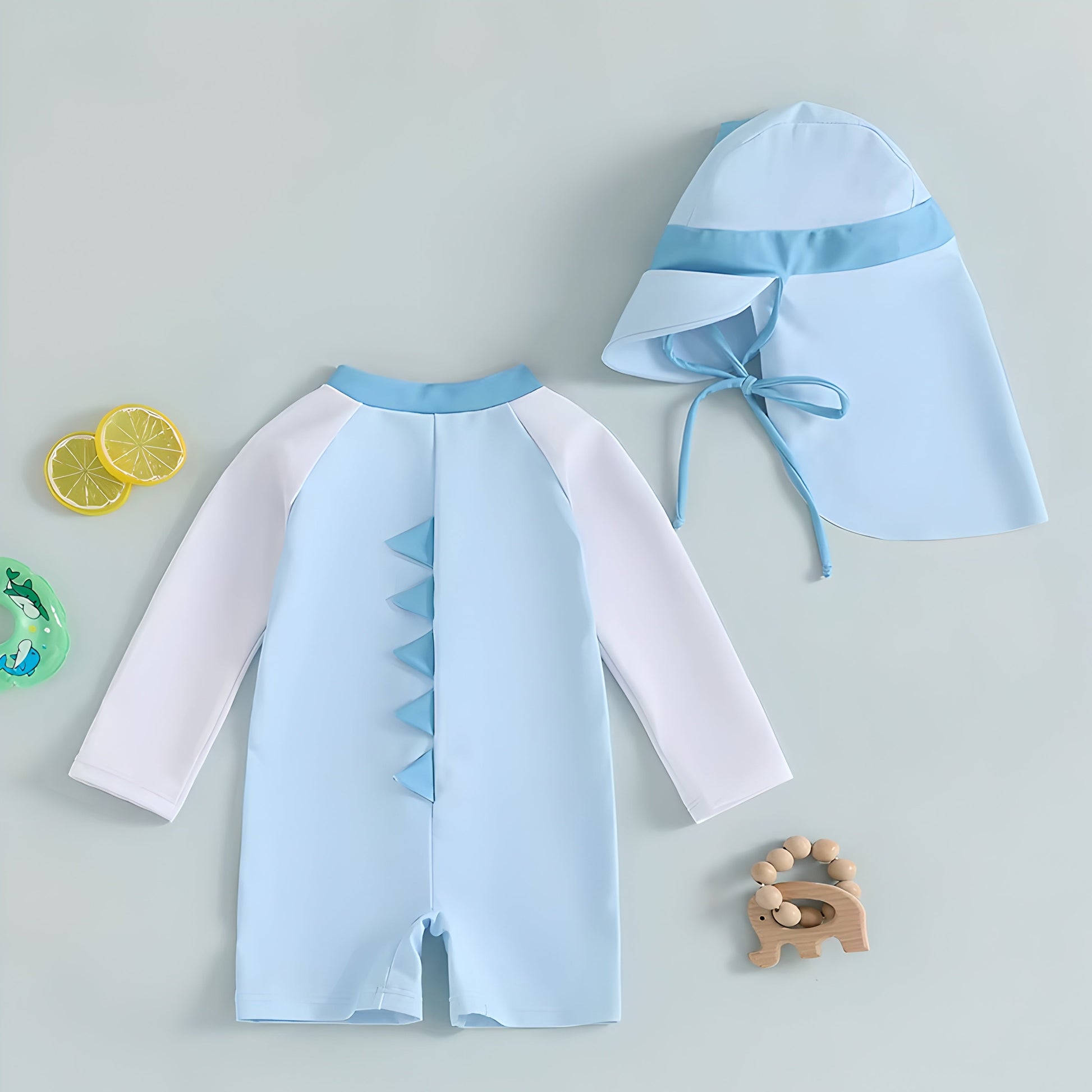 0-3Y Boys Swimsuit Dinosaur Print Long Sleeve with Hat